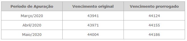 Com a mudança em relação à competência de maio/2020, e considerando as Portarias ME nº 139/20 e 150/20 anteriormente publicadas, os prazos postergados para pagamento das contribuições passam ser os seguintes: