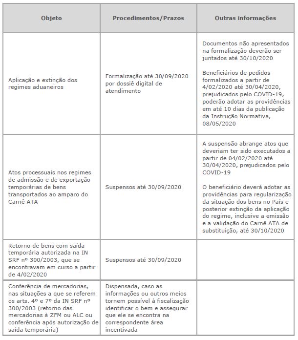 13. Procedimentos e prazos para aplicação de regimes aduaneiros especiais e aplicados em áreas especiais durante o COVID-19